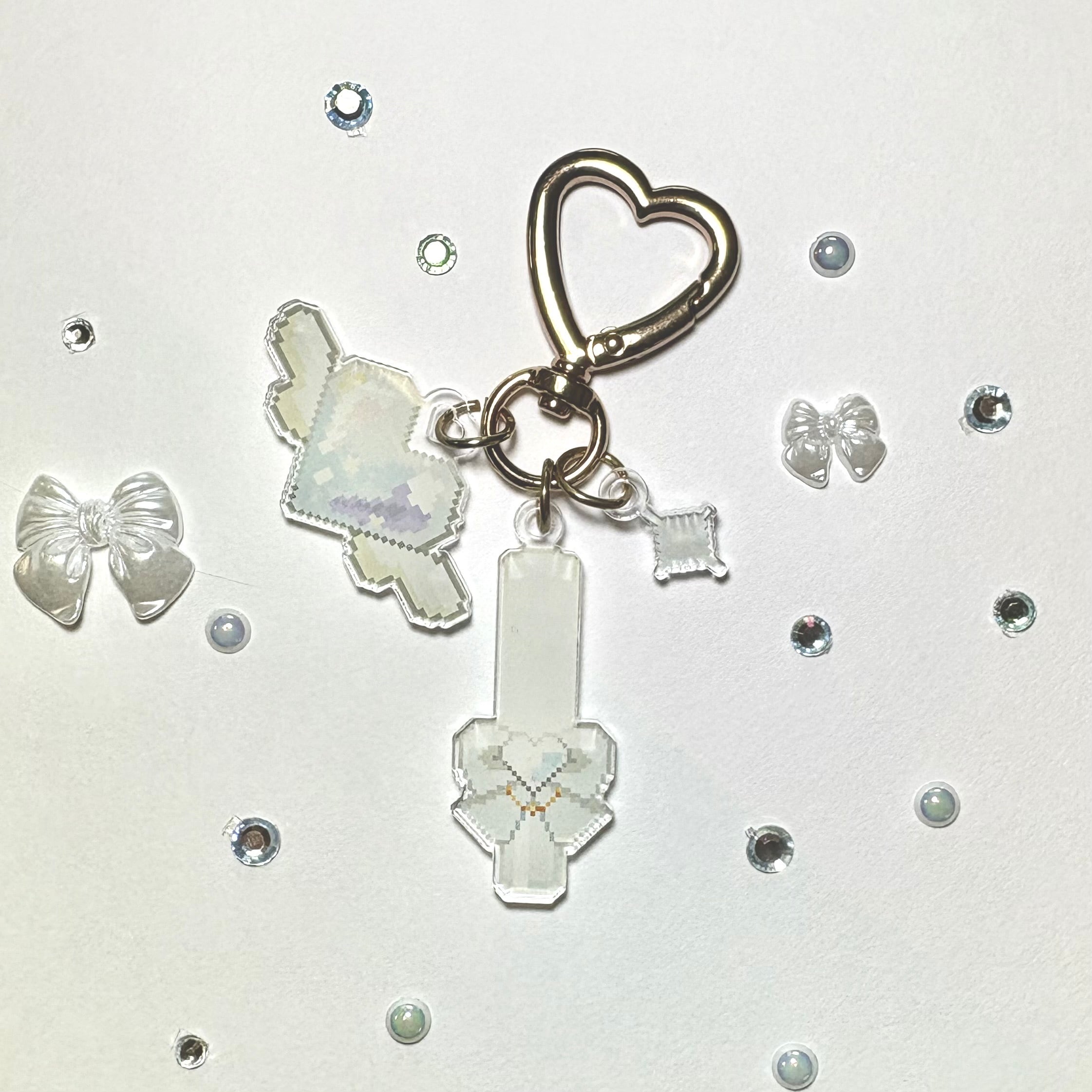 かわいいドット絵のアクリルキーホルダー3連チャームです。